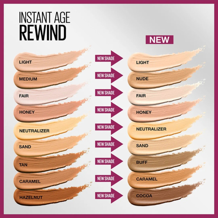 کانسیلر میبلین Instant Age Rewind با رنگ شماره ۱۲۰ Light، خرید امریکا ، محصولی محبوب و پرفروش است که برای پوشش دادن تیرگیها، لکهها و خطوط ریز اطراف چشم طراحی شده است. این کانسیلر با فرمولاسیون خاص حاوی مواد ضد پیری، علاوه بر پوشش دهی بالا، به کاهش نشانههای خستگی و چین و چروک کمک میکند و ظاهر جوانتر و شادابتری به پوست میبخشد.