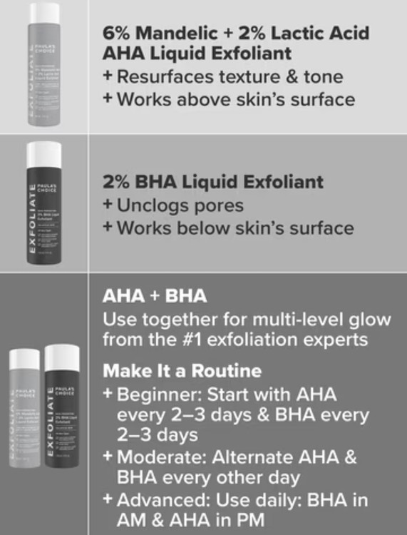 تونر لایهبردار پائولاز چویس با ۶٪ مندلیک و ۲٪ لاکتیک اسید، به روشن شدن پوست، کاهش لک و بهبود بافت پوست کمک میکند.