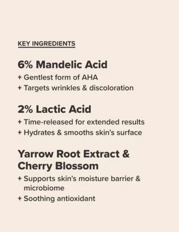 • حاوی ۶٪ مندلیک اسید + ۲٪ لاکتیک اسید