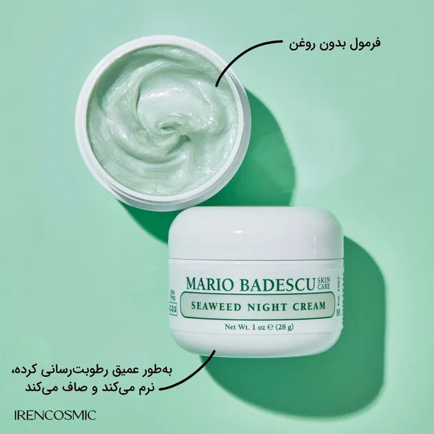کرم شب جلبک دریایی ماریو بادسکو (Mario Badescu Seaweed Night Cream) یک کرم شب سبک و مؤثر است که برای آبرسانی، حفظ تعادل رطوبت و بهبود ظاهر پوست طراحی شده است. این کرم با عصاره جلبک دریایی فرموله شده که به تغذیه پوست و حفظ شادابی آن در طول شب کمک میکند.